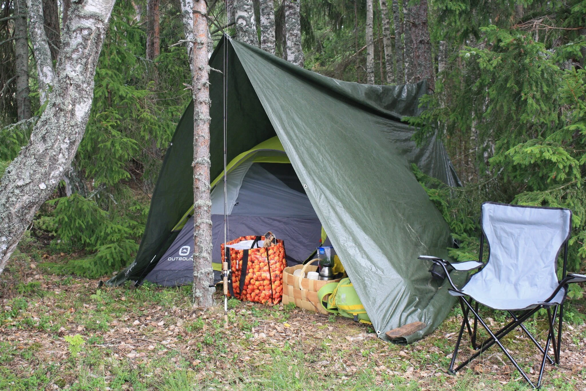 Opas tuo mukanaan 2kpl trangia retkikeittimiä, perus mausteet, vettä, puru- ja pannukahvia, sekä ruokailuvälineet.